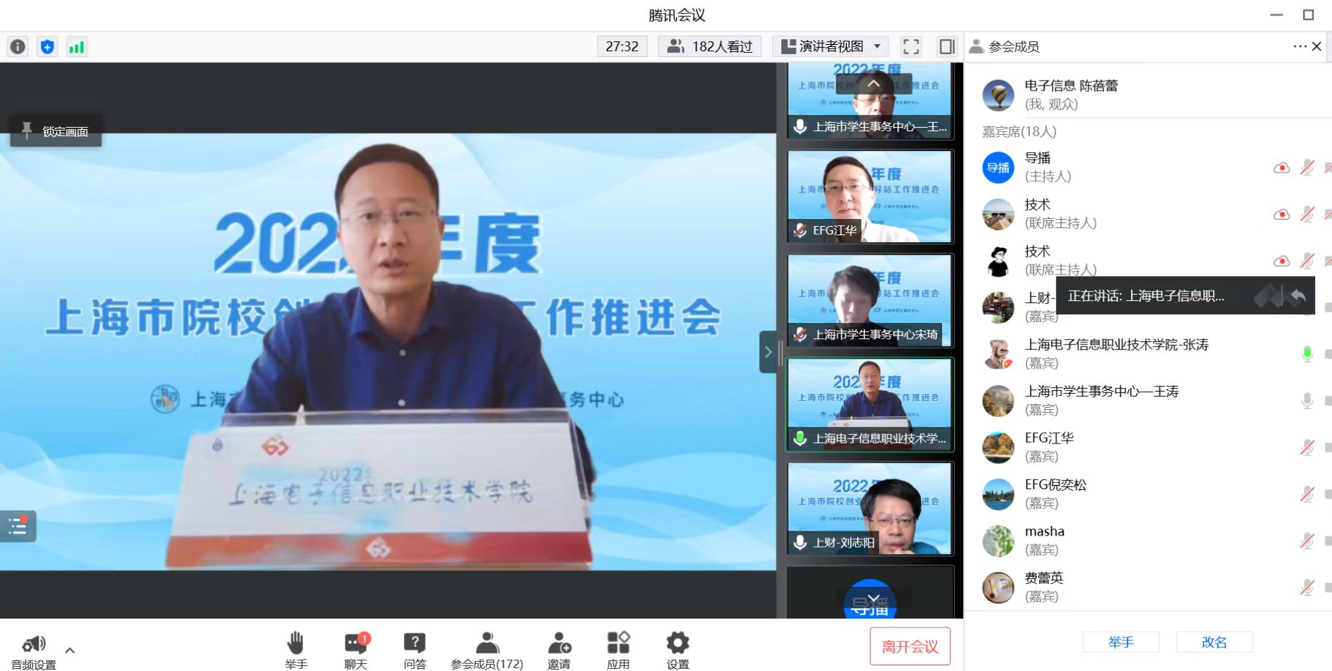 上海市就业促进中心创业指导处处长费蕾英宣布2021年院校创业指导站评估结果,上海电子信息职业技术学院光荣入选2021年评估A级院校名单。
