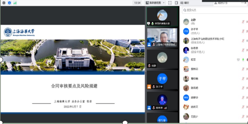 上海海事大学法务办公室负责人程菲老师以《合同审核要点及风险规避》为题作经验分享。讲座围绕合同归口管理注意事项、合同文本的审核要点、合同履行的注意事项展开,重点讲解了各类合同的审批风险点并分享了合同审核过程中的实操经验。