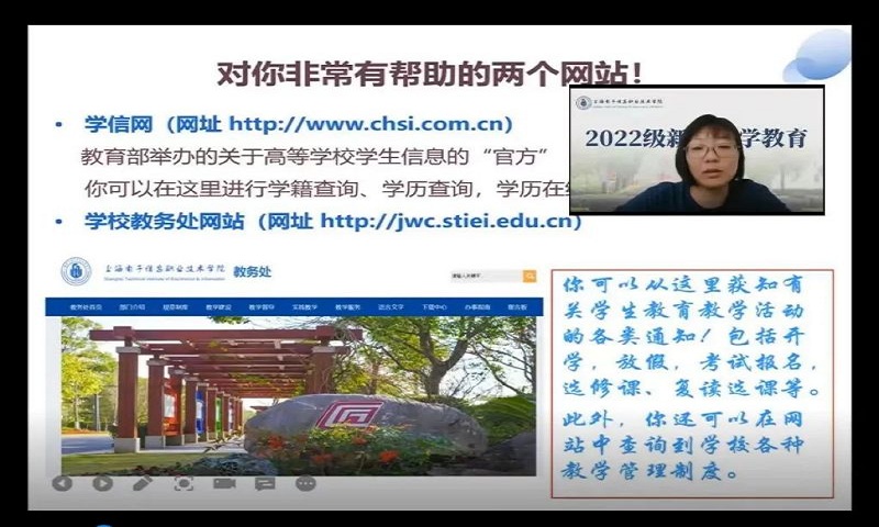 上午,党委宣传部部长张贯彻,教务处副处长周玉霞、教师袁冬琴,分别介绍了校园历史文化和学籍管理及线上课程演示。