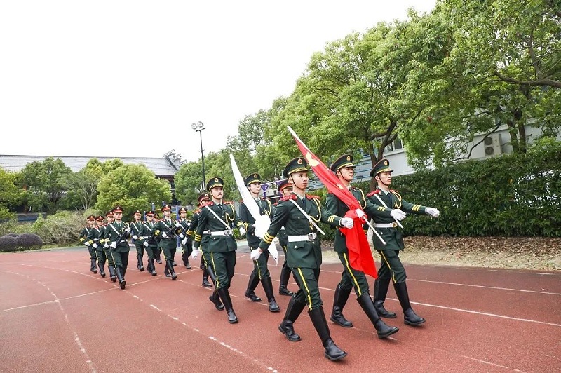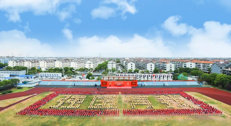 上午九时许,典礼正式开始。全体起立,迎国旗,奏唱国歌。开学典礼在庄严的升国旗仪式中拉开序幕。升校旗、奏校歌仪式渐次举行,运动场上回荡的歌声振奋人心。
