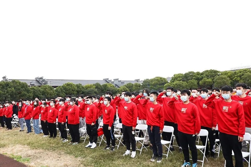 在全校上下掀起学习宣传贯彻党的二十大精神热潮之际,11月4日上午,学校2022级新生开学典礼在奉贤校区田径运动场举行。来自全国各地的2000余名新生,身着学校定制的红色、黄色文化衫,摆出“强国有我”的字样,歌颂党的二十大,表达对祖国的美好祝福和深沉的爱。