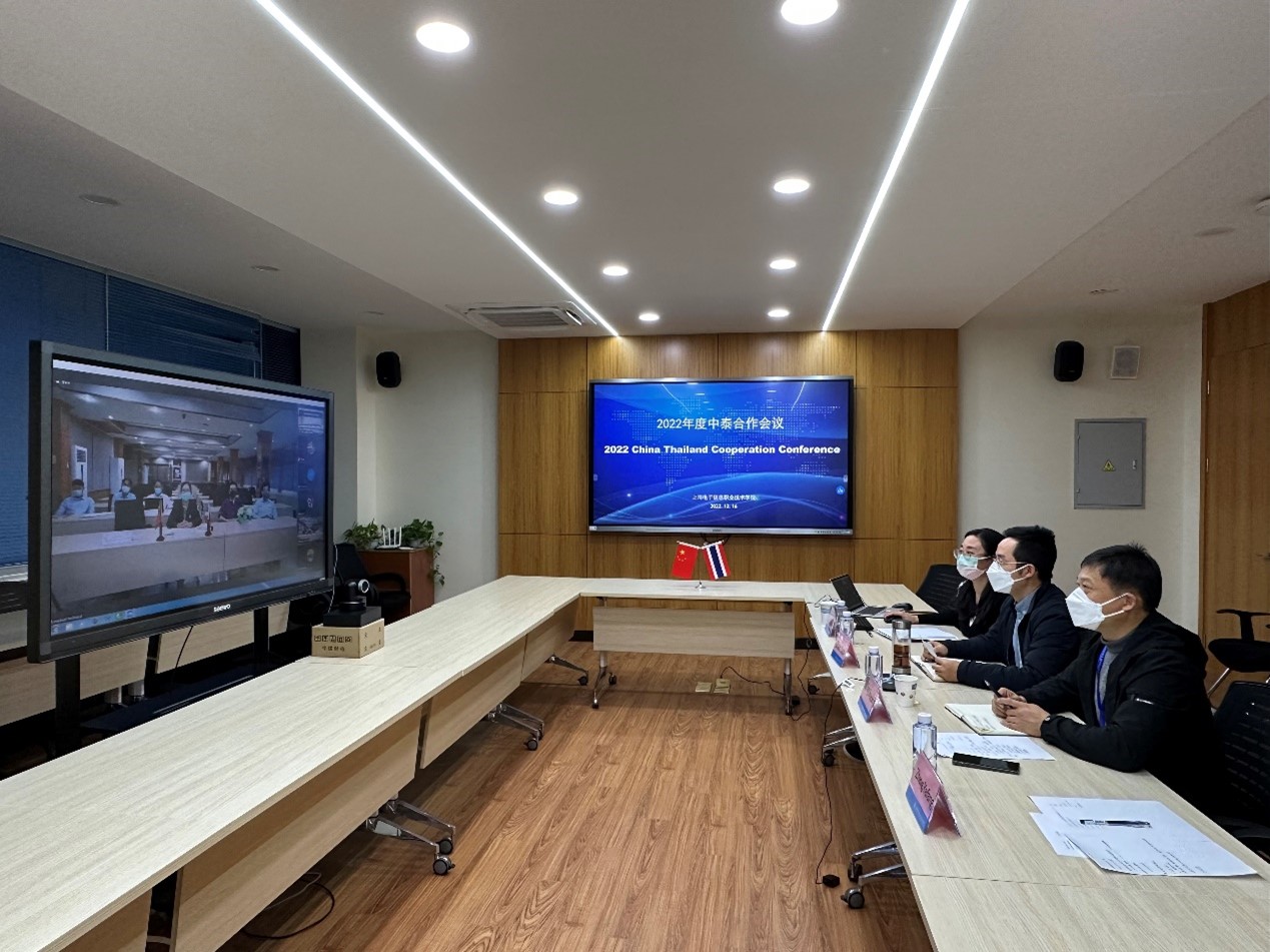 12月16日,学院与泰国教育部职业教育委员会曼谷职业教育中心、泰国民武里技术学院、北京唐风汉语国际有限公司成功召开了2022年度中泰合作会议。曼谷职业教育中心主任冲普努·波邦松(Chompunuch Buabangsorn)、副主任乌玛蓬·猜扎棱(Umaporn Chaichamroen),民武里技术学院院长塔维萨克·库通(Taweesak Kewthong)及相关教师,唐风汉语国际有限公司职业教育总监庄雷,学院党委副书记、院长赵坚、副院长方林中、机械与能源工程学院院长米红林与相关教师,以及校办(国际交流中心)相关人员共同参加了会议。会议采取视频会议形式,由学院副院长方林中主持。 方林中副院长介绍了参会人员和会议议程,对各方参会人员出席此次会议表示热烈欢迎。米红林院长介绍了中泰申谷学院境外人才联合培养项目的实施情况及2023年工作计划。各方针对2019级至2022级泰国学生的教学情况、新一期合作协议的签署及下一年度中泰合作计划进行了友好、积极的讨论与交流。