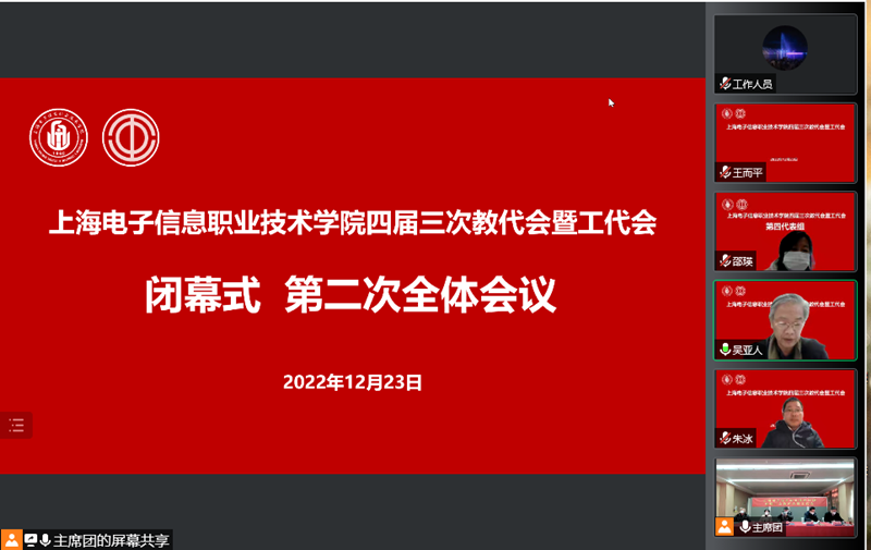 云端相聚展智慧,凝聚共识谱新篇。深冬虽寒,望春则暖。12月23日,学校四届三次教代会暨工代会胜利召开。来自全校各条战线的59名正式代表和6名列席代表,肩负着全校900余名教职工的期望和重托,以饱满的政治热情通过线上线下相结合的形式参加会议。