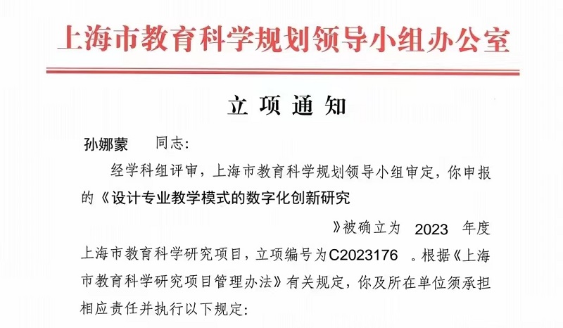 根据上海市教育科学规划领导小组办公室立项通知,365官网通信与信息工程学院陈晓洁老师的《上海高校分类评价视域下的“新高职”办学质量评价研究》(立项编号:C202317)、设计与艺术学院孙娜蒙老师的《设计专业教学模式的数字化创新研究》(立项编号:C2023176)被确立为2023年度上海市教育科学研究项目。