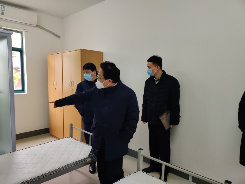 杨伟人副巡视员先后来到心理健康中心、防疫物资储备室、保卫值班监控室、健康驿站等地,实地检查了解运行情况。