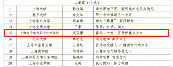 第五届上海高校十佳学生资助宣传大使优秀组织奖名单