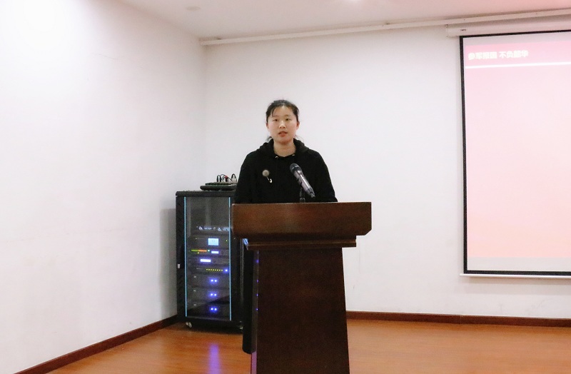 机械与能源工程学院张晓晓老师作为辅导员代表发言,祝贺同学们通过层层选拔,圆梦绿色军营,用实际行动肩负起保家卫国的重任。作为军嫂,她寄语同学们珍惜青春、把握机遇,在部队这个“大学校”“大熔炉”里好好锤炼思想和品性,全面提高各方面能力,努力把自己培养成为政治合格、军事过硬、纪律严明、作风优良的新时代优秀军人。