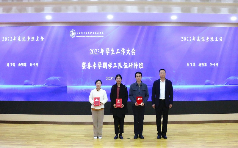 大会向2022年度在学生工作中做出突出贡献的同志予以表彰,与会领导为获奖者颁奖并合影留念。