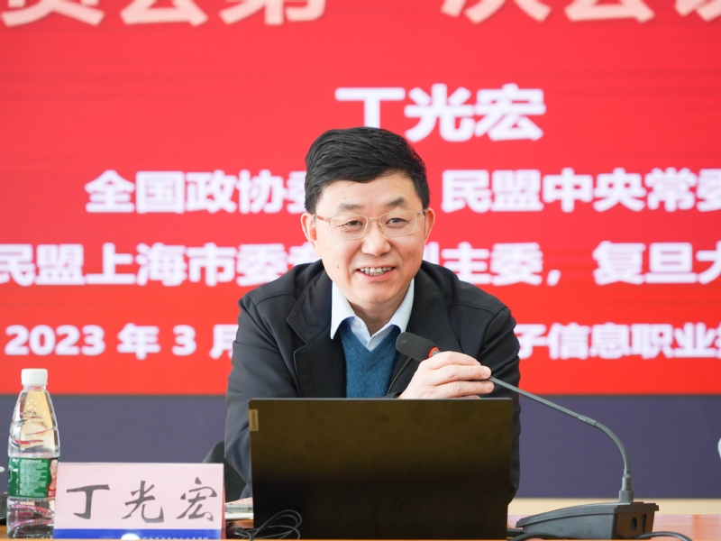 丁光宏教授以“中国人民政治协商会议第十四届全国委员会第一次会议参会汇报”为题作报告。他从大会基本概况与主要特点、选举新一届全国政协领导人、政协章程修正案、政协常委会和提案工作报告、政治决议等方面对全国政协十四届一次会议内容进行了详细介绍,并传达了习近平总书记参加江苏代表团、民建和工商联联组会时的重要讲话精神。他围绕“这五年中国发展成绩单”“2023年发展计划”“政府工作报告热点”“国务院机构改革”等方面,对政府工作报告进行了深入浅出的阐释、分析和解读。丁教授还结合在沪全国政协委员参会情况、全国政协民盟界、个人履职情况等方面,畅谈自身体会并分享了关于职业教育方面的观点。他指出,职业教育要加强校企紧密合作,借鉴德国模式,形成上海经验。同时,要给予职业教育的社会地位与荣耀,加强职业教育招生制度改革,从而扎实推动职业教育高质量发展。