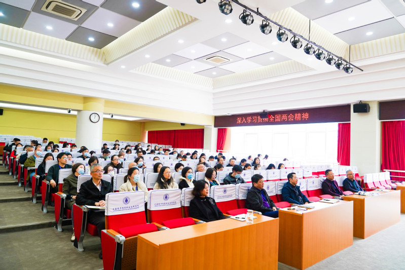 3月22日,学校在C108报告厅举行党委理论学习中心组(扩大)学习会。全国政协委员,民盟中央常委、民盟上海市委专职副主委、复旦大学教授丁光宏受邀来校作学习贯彻两会精神辅导报告。校领导、全体中层干部、马院教师和全体辅导员参加。报告会由校党委书记田钦主持。
