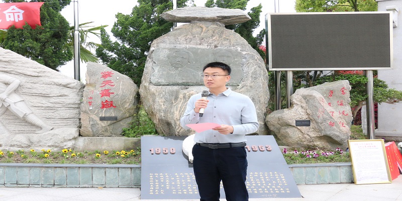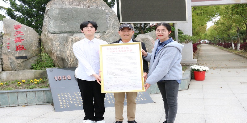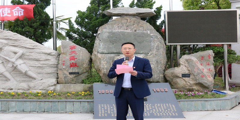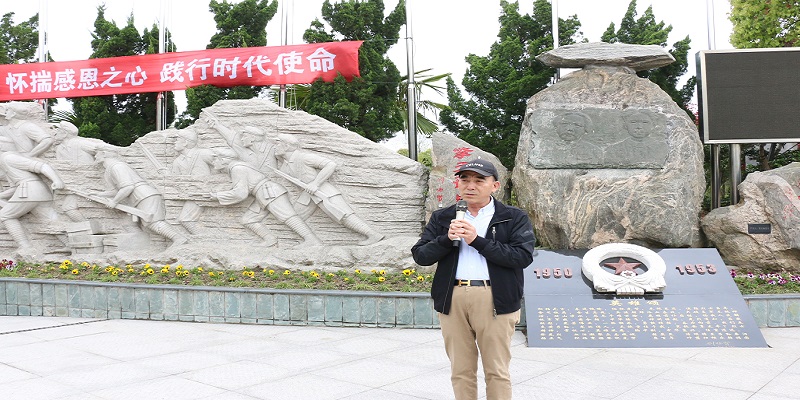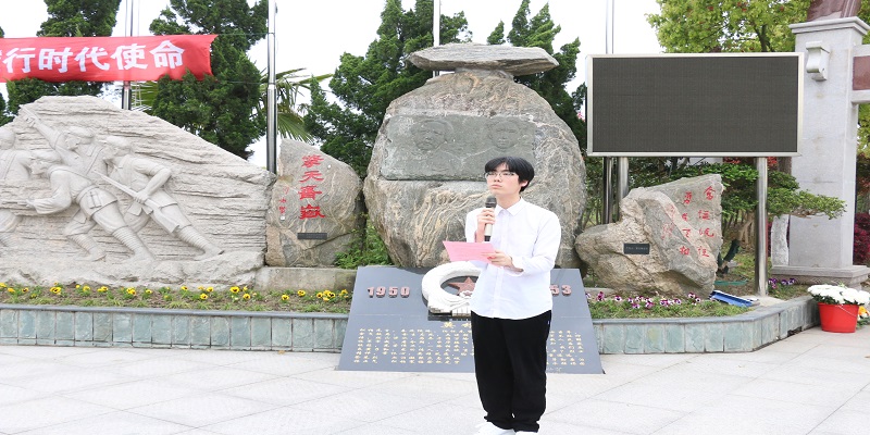 仪式伊始,上海永福园陵有限公司董事长徐渭岳先生致辞。他表示,2023年是抗美援朝战争胜利70周年,希望同学们铭记历史,传承和弘扬革命者艰苦奋进的精神;珍惜现有的学习实践机会,将其转化为奋斗的动力,不断提升、完善自我,提高自身素质,肩负起时代赋予青年人的历史重任。
