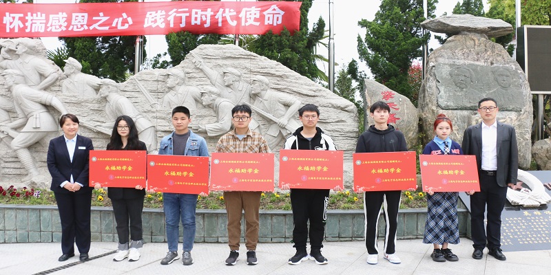 为深入推进“521大爱铸梦”发展型资助育人工程,进一步弘扬爱国精神和革命奋斗精神,增强学生家国情怀,4月14日下午,学校在上海人民志愿军纪念广场举行2021-2022学年永福奖助学金、徐渭岳奖学金颁发仪式。上海永福园陵有限公司董事长徐渭岳、党支部书记孙伯根、副总经理王雅萍、办公室主任徐冬,学校党委副书记、副院长张涛、学生处处长栾文飞、副处长吴奇峰出席仪式,学生处相关老师、受助学生代表和少数民族学生代表共计50余人参加。