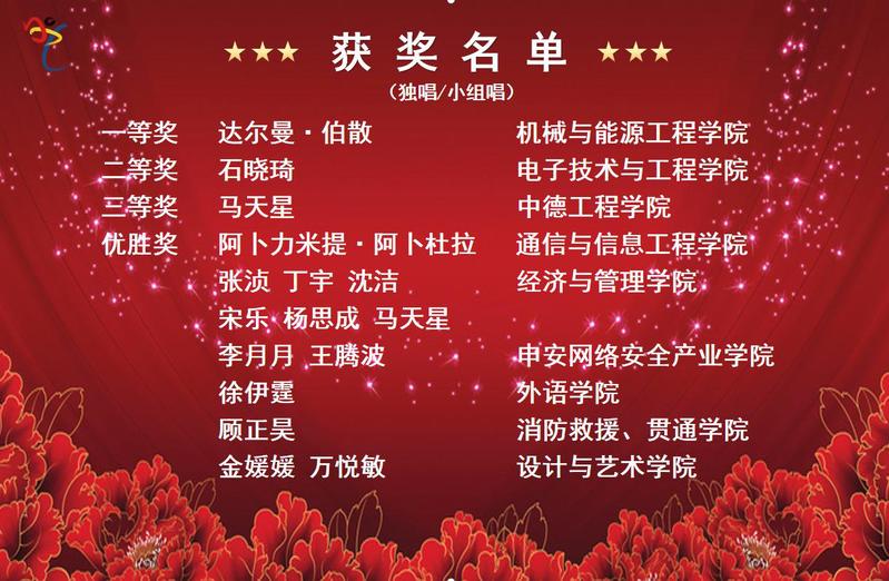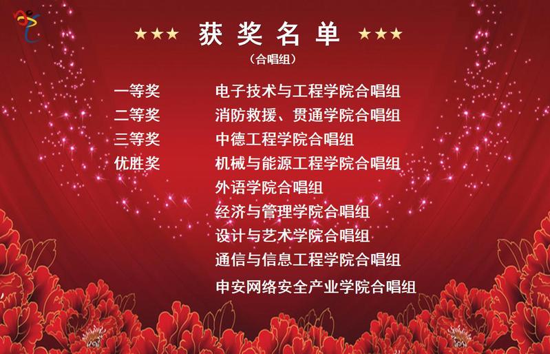 经过激烈角逐,评委公平、公正、公开的打分,比赛分别评选出独唱/小组唱和合唱组一等奖1名,二等奖1名,三等奖1名,优胜奖6名。