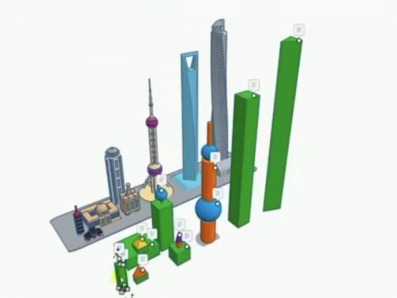 云端体验“创造伟大—虚拟建模3D打印职业体验”提供专题的录播课程、在线的建模平台和互动的直播展示等内容。针对不同需求的学员安排不同的课程,主要包括3D打印的基础入门知识、简单三维设计入门、3D打印的切片处理以及3D打印的操作和实践,让学生们可以快速学习和应用。体验过程中,师生利用在线三维建模平台进行互动,创建“上海天际线”主题作品;利用直播平台进行在线3D打印直播互动,学员们可以随时交流自己制作的模型,老师及时给予指导,给出修改意见。