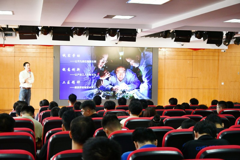 “勤学苦练是天赋的代名词,不走捷径是最大的捷径。”周琦炜分享道。布线、端接、组装……极狭窄的空间里,一干就是数小时,这样的工作,他坚持了17年。坚守飞机制造一线,大力弘扬敬业、精益、专注、创新的工匠精神,凭借百折不挠的毅力、百倍的努力,敢于争第一、敢于创唯一的精神,用个人的奋斗与拼搏诠释了“何为大国工匠”。他的故事引发了与会全体师生的强烈触动和声声赞叹!周琦炜嘱咐同学们要谨记习近平总书记的殷殷嘱托,好学善思、爱岗敬业,争做新时代的大国工匠。鼓励同学们向大国工匠学习,以工匠精神为指引,脚踏实地苦练技能,将来做对国家建设、对社会发展有用的人才,为实现中华民族伟大复兴的中国梦贡献自己的力量!