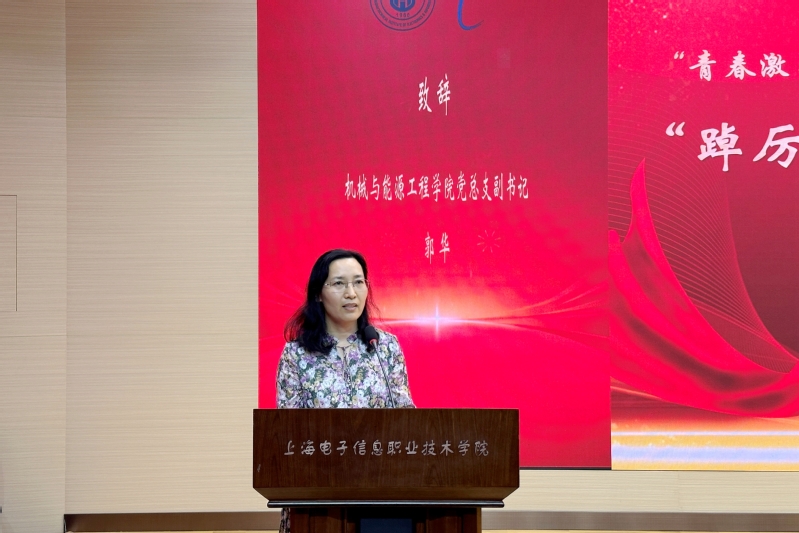 机械与能源工程学院党总支副书记郭华致开幕辞,她对莅临本次比赛的各位领导、嘉宾表示热烈欢迎,希望青年学生在漫漫人生路上不断自我锤炼,在实现民族复兴的赛道上奋勇争先,在时代发展进步的潮流中绽放光芒,用无悔青春跑出属于当代青年的崭新成绩。