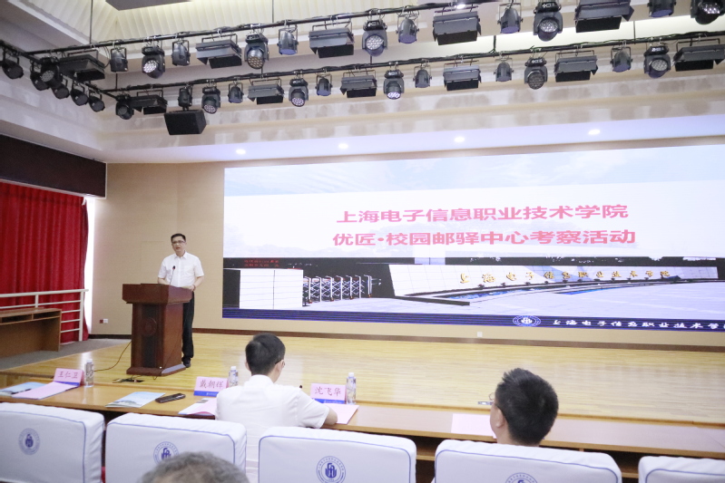 张涛对培训班学员们来校参观交流表示欢迎,并介绍了学校的办学情况。他表示,当前全校上下正奋力创建职业本科大学,产教融合、协同育人对提高人才培养质量有着重要推动作用。365官网与中国邮政集团有限公司上海市奉贤区分公司合作共建的“优匠·校园邮驿中心”是在实施国家级“提质培优”建设项目的过程中,在双方的共同努力下进行的一种全新的尝试,项目的实施既深化了学校产教融合建设工作,也为学生增加了提高技能的实训基地,是校企合作的优秀典范。希望通过此次活动,进一步增进学校与中国邮政集团的校企合作,协同育人,共谋发展。