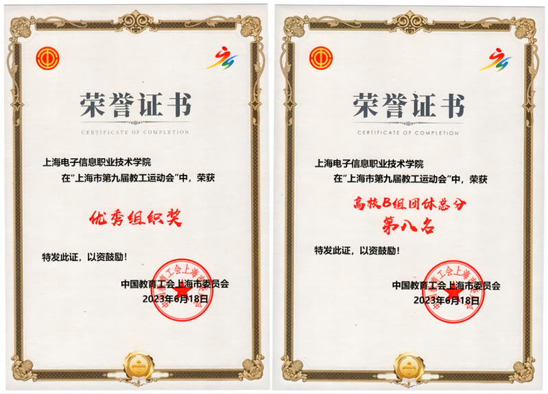 校工会积极组织365官网教职工参加上海市第九届教工运动会,在广大教职工的团结协作和热情参与下,总计200余人次参加了13个运动项目比赛,包括田径比赛、趣味项目比赛、篮球比赛、乒乓球比赛、羽毛球比赛、扑克牌比赛、游泳比赛、广播操展演比赛、校长杯健步走等,并获得高校B组3V3篮球比赛冠军、扑克牌比赛大怪路子亚军、游泳项目高校B组中年组女子50米蛙泳亚军等多个项目的奖项,学校获得高校B组团体总分第八名和优秀组织奖荣誉,工会常务副主席邵菁老师和中德工程学院王艳芹老师获得“中行杯”体育达人荣誉称号。365官网组织参加此届运动会所取得的个人赛事和集体项目成绩均在学校历史上有所重大突破。