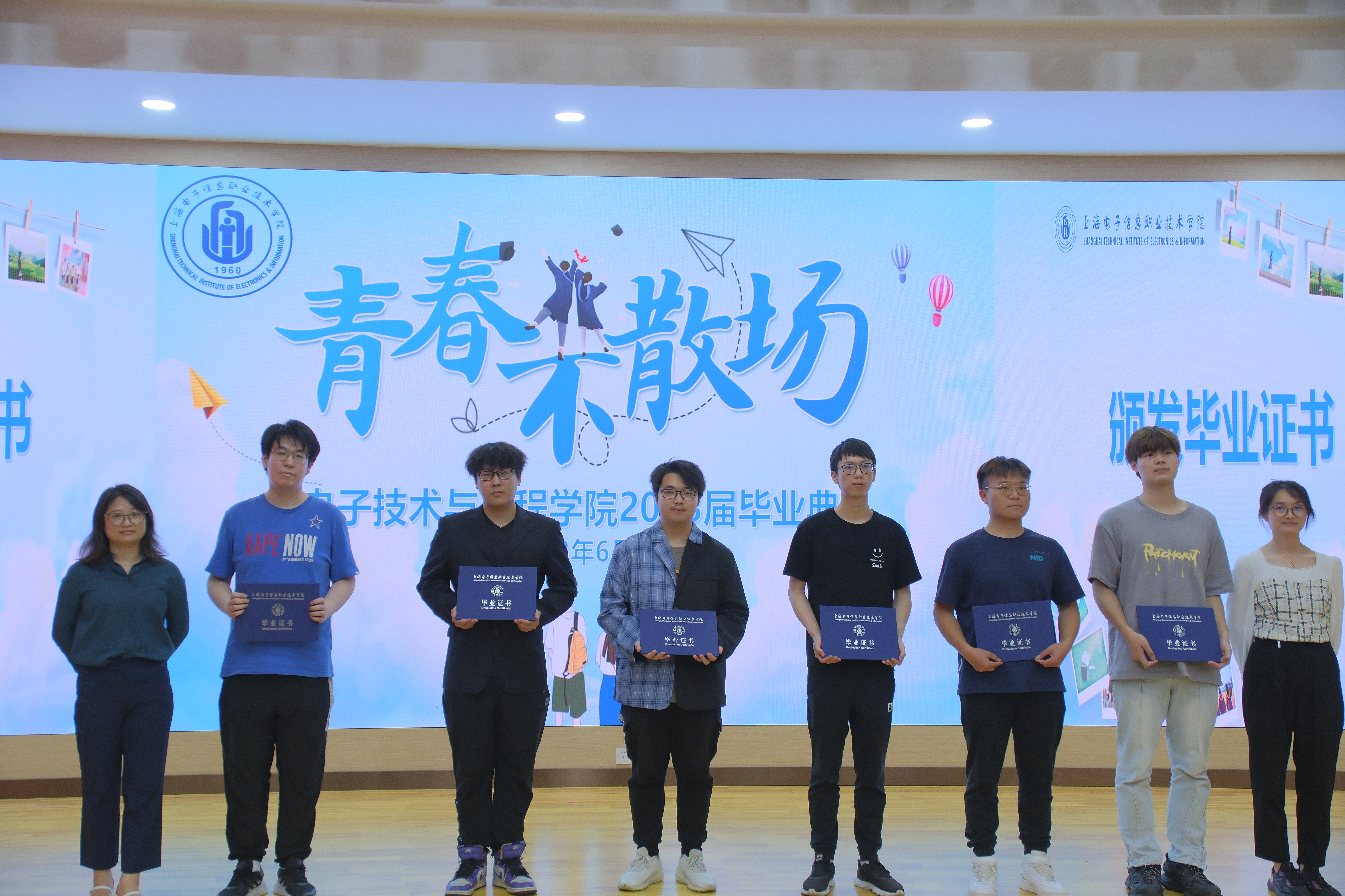 毕业典礼上,学院党总支书记李军锋宣读电子技术与工程学院2023届上海市优秀毕业生、学校优秀毕业生表彰名单。学校党委副书记、校长赵坚为上海市优秀毕业生颁发荣誉证书。学院领导为学校优秀毕业生颁发荣誉证书。
