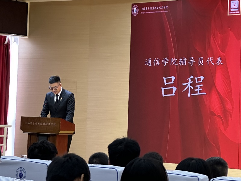 毕业班辅导员代表吕程老师发言,希望大家能始终坚持正确的理想信念和价值观,秉承诚实守信、勤奋努力的原则,持之以恒,一以贯之,不断追求个人的成长和进步。