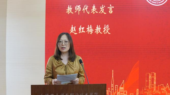 专任教师代表赵红梅教授在发言中希望同学们不忘初心,始终做一个心中有目标、肩上有责任之人;秉承好奇心,始终做一个心中有希望、脚下有行动之人;保持进取心,始终做一个心中有阳光、眼里有梦想之人。