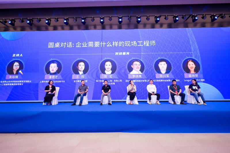 上海市物联网行业协会潘君才、安芯教育王翔、库卡机器人(上海)有限公司陈宏、深圳市越疆科技股份有限公司、广州万维视景科技有限公司、Google Nest盛晓丽围绕“企业需要什么样的现场工程师”等方面深入展开圆桌对话。