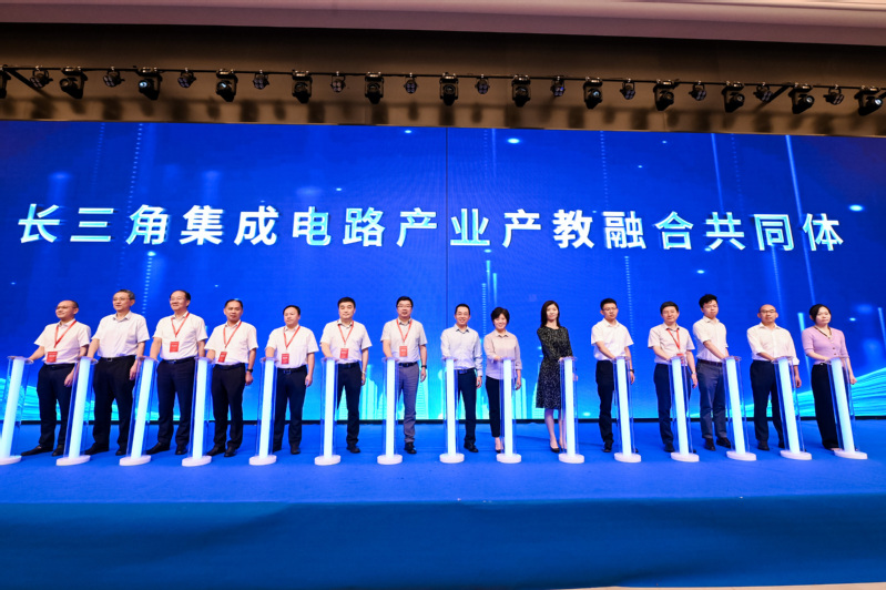来自全国15家企业、院校参加集成电路产业学院和长三角集成电路产业产教融合共同体发布会。中国半导体协会集成电路分会主任陆瑛发布宣言。
