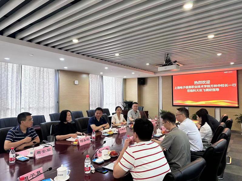 为进一步推动校企合作、产教融合,促进学校专业建设和课程建设,2023年7月18日,校领导方林中带队赴合肥科大讯飞集团总部考察调研。科大讯飞高教业务总经理李伟国、科大讯飞智慧教育产品部总经理连顺等热情接待了方林中一行。学校教务处兰小云、李声锋以及申安网络安全产业学院何永艳、周安石等老师陪同前往。
