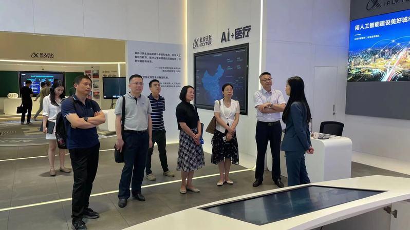 在此次考察中,方林中一行参观了科大讯飞体验馆,了解了科大讯飞企业发展史、专业领域成果等基本情况,并观摩了近年来该公司在AI+家庭、AI+教育、AI+办公、AI+数字员工、AI+城市、AI+汽车、AI+医疗、AI+司法等领域研发的产品与服务成果展示。
