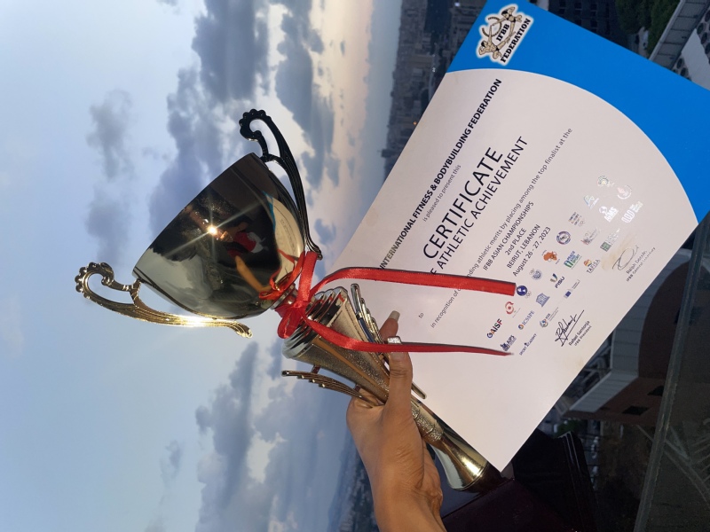 曹淼老师发扬连续作战的体育精神,旋即参加了2023年8月25至8月28日在黎巴嫩举行的IFBB亚洲健身健美锦标赛。经过两天的激烈角逐,曹淼老师勇夺“女子艺术健身”亚军。据悉,该赛事共有全亚洲15个国家和地区的526名优秀运动员参赛。