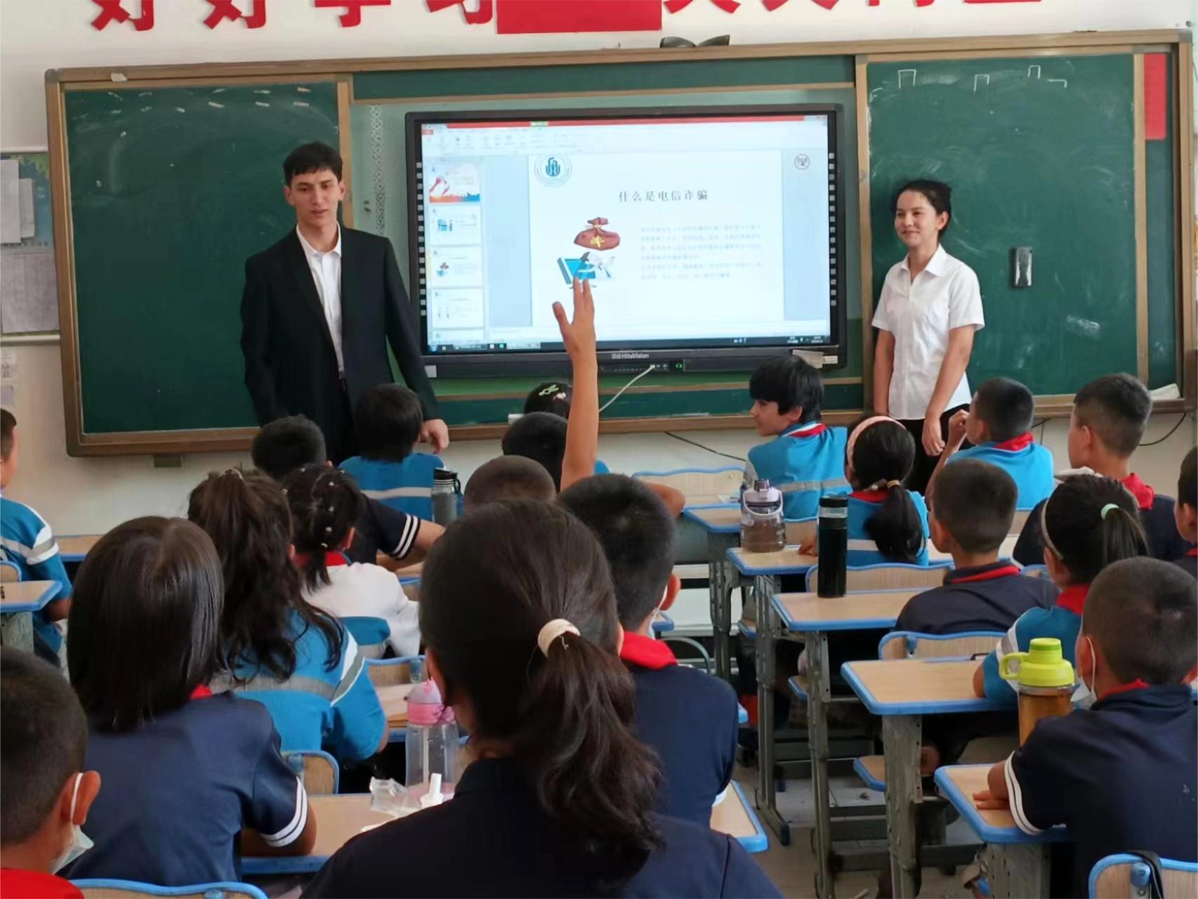 暑假期间,资助宣讲团队来到喀什市多来特巴格乡塔尔吾古孜村和村里的多来特巴格乡新星小学开展系列宣讲活动。他们走进乡村通过资助宣传海报、宣传资料的分发、解读,让当地贫困家庭了解国家资助政策,消除大家对资助政策理解的盲点和误区,提升政策知晓度;他们走进校园,讲述自己在国家、学校、老师的帮助和支持下,在上海求学的所见所闻,积极上进,大胆追梦的求学故事,正面宣传国家资助政策,开展防骗知识宣传,进行艺术文化传播、交流活动,让新疆学子在认真聆听和欢声笑语中感受跨地域的温度和关怀;他们走进家庭,对特别贫困的家庭及需要受助学生进行个体化访谈,深入了解学生的家庭经济和学习生活等情况,掌握学生的思想动态、实际困难与需求,进行个体心理和成长辅导,为他们进行深入的资助宣讲和防骗宣传,并提供慰问和帮助。
