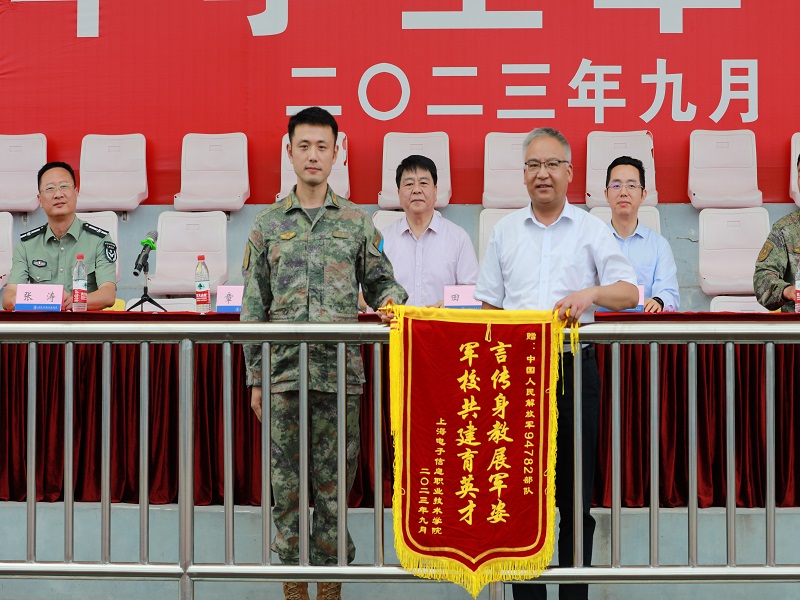 学校副院长徐德明代表学校向94782部队赠送锦旗。