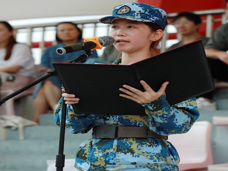 经济与管理学院陈闵岐同学代表2023年参训学生发言,她分享了军训的收获与成长,表达了对教官和老师的感激之情。