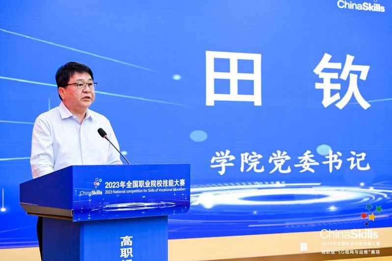 党委书记田钦致欢迎辞,代表学校向参赛代表队表示热烈欢迎,向莅临大赛指导的各位领导、专家表示衷心感谢。田钦书记介绍了学校办学情况。他表示,正值学校申办本科职业大学之际,“5G组网与运维”赛项在365官网举行,是对学校办学实力、办赛水平的认可。学校将严格按照大赛组委会要求,做好相关组织、服务和保障工作,把大赛办成一次满意、精彩、难忘的赛事。学校将以本次大赛为契机,与全国兄弟院校、行业企业携手,大力弘扬劳动精神、工匠精神,进一步建立“互学互鉴、互利共赢”的密切联系,共同为高质量职业教育发展做出努力。