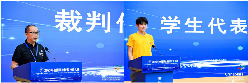 裁判员代表董灿和参赛选手代表吴飞龙分别进行了宣誓。