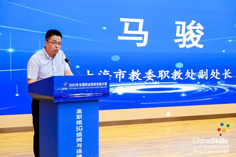 开幕式上,上海市教育委员会职教处副处长马骏在问候全国各地来沪参赛师生的同时,介绍了全国职业院校技能大赛举办的背景、目的和意义。他指出,近年来,上海职业教育积极贯彻落实党的二十大关于职业教育的部署要求和习近平总书记关于职业教育工作的重要指示,围绕“四大功能”“五个中心”“九大产业”“五大新城”等城市发展需求和率先实现教育现代化的目标,积极探索构建现代职业教育体系,深入推进职普融通、产教融合、科教融汇,切实将习近平总书记对职业教育“大有可为”的殷切期盼,转化为职业教育“大有作为”的生动实践。他希望各参赛队加强交流合作,共同提升进步,以实际行动推进技能成才技能强国的目标。通过大赛实现“以赛促教、以赛促学、以赛促改、以赛促建”,不断完善技能人才培养、使用、评价、激励机制,落实教育部推进现代职业教育体系建设改革重点任务,推动职业教育高质量发展。