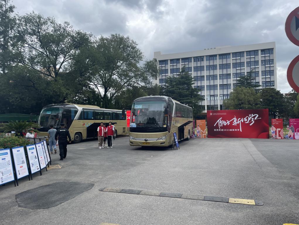 为了方便外省市新生报到,365官网在普陀校区安排了往返奉贤和金山两校区的校园摆渡车,免费接送新生和家长,为他们提供贴心的服务。