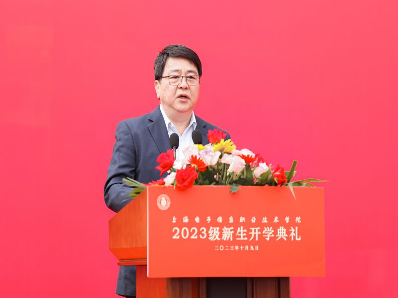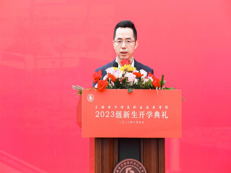 学校党委副书记、院长赵坚代表全校师生员工对2023级新生的到来表示热烈欢迎。他指出,上海电子信息职业技术学院是一所办学底蕴深厚、充满创新活力的学校,是目前上海规模最大的公办高等职业院校。建校63年来,学校始终追求卓越发展,坚持开拓创新、砥砺前行;始终牢记职责使命,坚持立德树人、铸魂育人;始终胸怀国之大者,坚持服务国家、奉献社会。