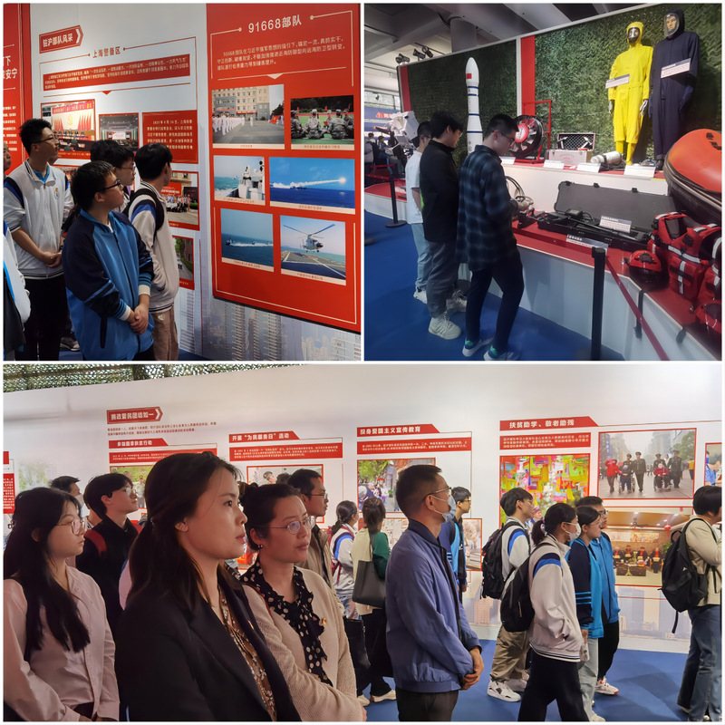 10月11日下午,消防救援、贯通学院组织党员、团员代表赴黄浦滨江参观由市委宣传部、市教卫工作党委、市教委、上海警备区政治工作局、市拥军优属基金会等共同主办的“踔厉奋发强国防勇毅前行向复兴”全民国防教育主题展。