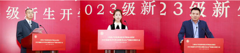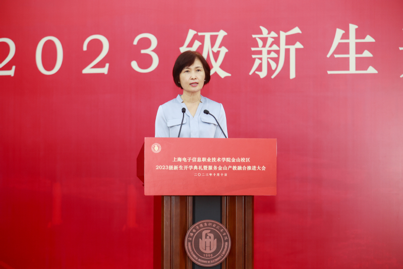“上海高等教育正着力在提高人才自主培养质量、服务区域经济社会发展等方面先行先试”,市教委副主任孙真荣在讲话中表示,上海电子信息职业技术学院新生开学典礼暨产教融合推进大会的顺利召开,是对学校主动融入区域发展,深度推进产教融合的典范。他要求学校坚持走产教融合发展之路,成为职业教育改革发展的示范者,为区域经济社会发展作出更多贡献。他希望同学们志存高远,发奋图强,立德修身,知行合一,在大学期间充分利用优质的学习资源,成就更好的自己。他表示,上海市教委会一如既往地关注支持职业教育的发展,推动现代职业教育体系建设。
