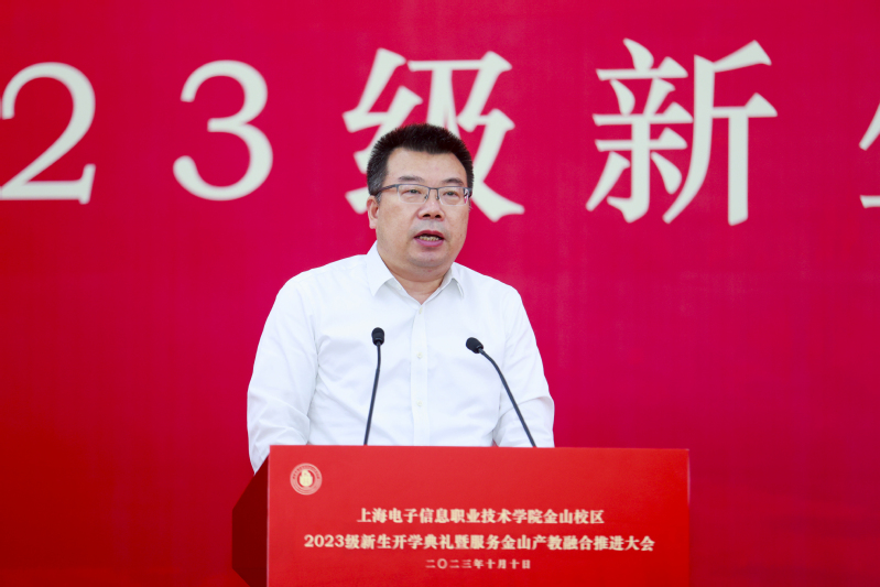 党委书记田钦作开场致辞,他代表学校向关心、建设金山校区的各级领导和各界人士表示衷心感谢。他表示,金山校区将对接智能制造,数字经济等产业发展,面向长三角和金山新城建设,作为服务“上海制造”重要承载区、科创成果转化区。他希望同学珍惜学习机会,树立远大目标,学好知识、本领和技能,努力成为德智体美劳全面发展的社会主义建设者和接班人。
