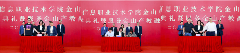 会上,中德工程学院教授苗景国、经济与管理学院学生陈闽岐作为师生代表发言,依必艾公司董事长赵腾作为企业代表发言。在与会领导的见证下,学校副院长窦争妍与上海市物联网行业协会、上海临港金山新兴产业发展有限公司、上海长光企业发展有限公司、上海上诺科技发展有限公司、上海位山科技有限公司、上海双瀛航空科技有限公司等协会和企业代表分别签署了产教融合战略合作协议,马建超、顾宏伟、田钦、吴金宝、王林、黄清林等领导共同为金山产学研中小企业服务中心揭牌。