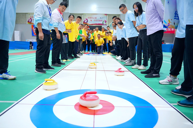 广播操展演队伍整齐列队,精神饱满,校领导为广播操展演前10名队伍颁发奖杯。15支队伍参加了“趣味投篮、无敌轰炸机、飞盘九宫格、忠胆英雄、火星撞地球、旱地冰壶”等6个集体趣味项目,活动项目以其趣味性、娱乐性和广泛参与性,受到广大教职工喜爱。活动现场,教职工热情高涨、奋勇争先参与到各项比赛项目中,充分发扬奋勇拼搏、团结协作精神,此起彼伏的掌声和欢笑声充盈了整个运动场。