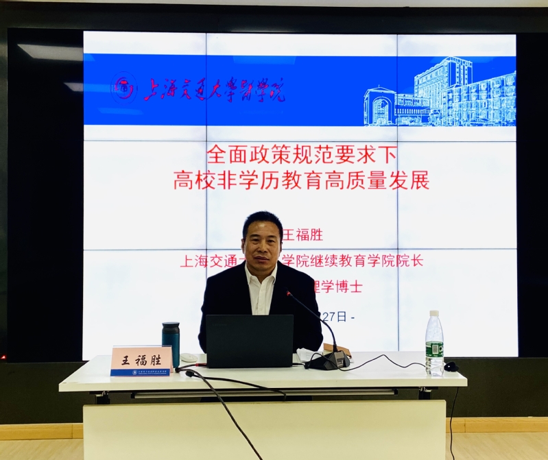10月27日上午,人事处和继续教育学院联合举办了《全面政策规范要求下高校非学历教育高质量发展》专题培训。此次培训邀请了上海交通大学医学院继续教育学院院长、上海市成人教育协会院校教育专业委员会副主任王福胜主讲,继续教育学院院长朱咏梅主持,各二级学院教师代表40余人参加。