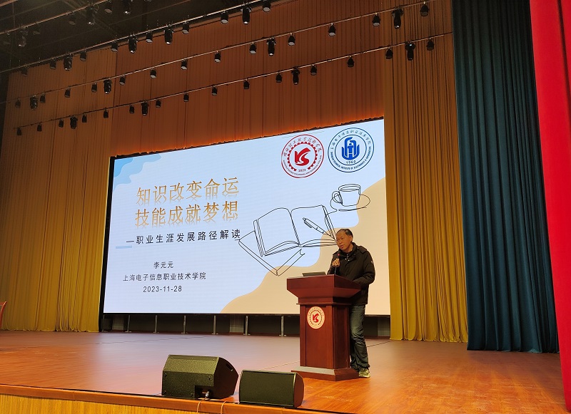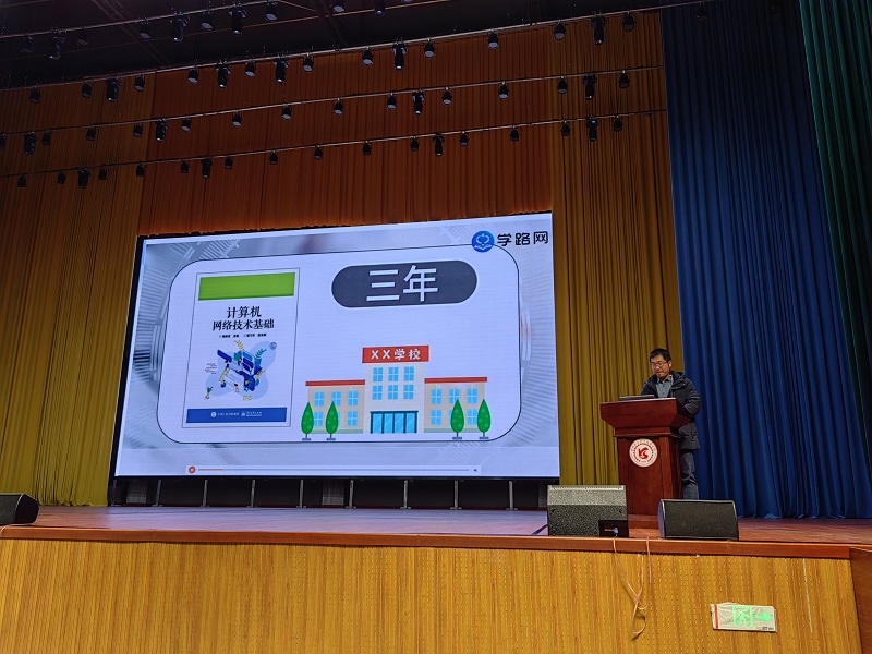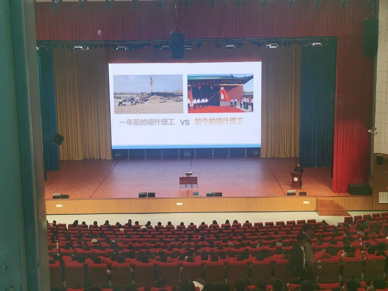 在喀什理工职业技术学院大礼堂,365官网两位教师为800名师生作报告。李元元老师围绕“知识改变命运、技能成就梦想”主题,鼓励学生在有限的时间内要努力提升自己的技能,丰富自己的履历。365官网学生代表阿瓦古丽·巴拉提进行了现场连线,分享自己的学习经历以及自己的职业生涯规划。朱冰老师以“计算机网络技术专业职业发展路径”为题,从计算机网络技术专业行业背景、培养方案、发展路径等领域对专业进行了全方位的解读,并结合学习向学生阐释了专业基础知识,让学生进一步理解了自己所学的专业。