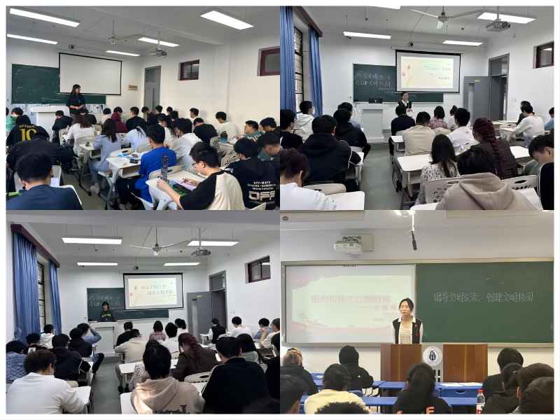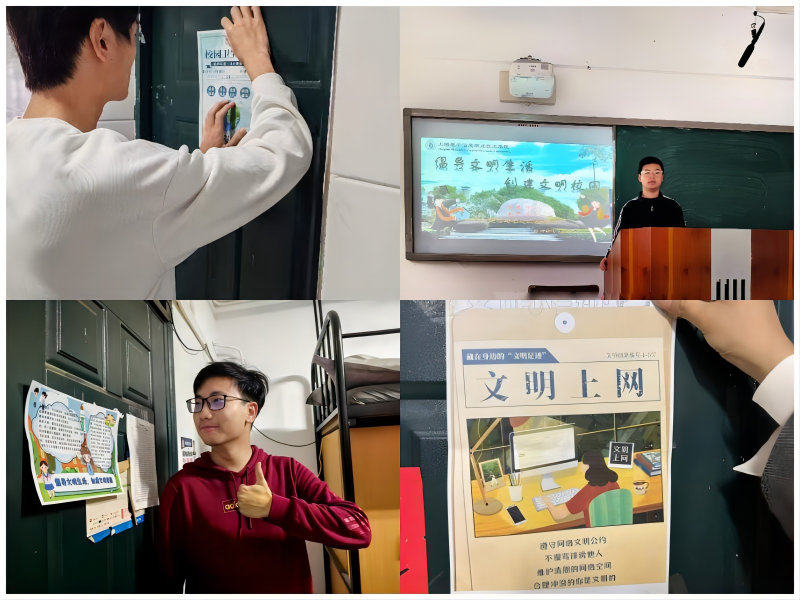 为倡导学生文明生活,改善校园文明环境,鼓励学生争当文明校园的建设者、宣传者、推动者,营造和谐文明的校园文化氛围,学院积极组织开展了文明校园创建的主题教育活动。本次主题教育活动覆盖学院全体同学,活动形式包括主题班会、演讲比赛、寝室宣传等方式。通过主题教育活动的开展,同学们深刻认识到创建文明校园的重要性,提升了文明行为的践行意识,同学们表示将自觉约束自身行为,严格遵守学校的各项行为规范,积极投身于创建文明校园的实践。