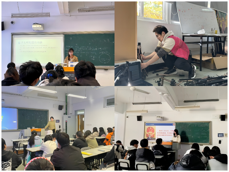 为进一步推进校园文明建设,提高外语学院学生的使命感和担当意识,推动社会文明发展,鼓励学生成为文明校园的创建者、宣传者、推动者,营造积极向上的校园文明氛围,根据11月月度主题教育工作安排,外语学院结合实际情况,开展“文明校园创建”主题教育活动,以多种形式的活动为载体,使学生深入理解社会主义核心价值观,将其内化于心、外化于行。各班级组织主题班会,学生们围绕文明校园创建展开讨论,共同制定班级文明公约,明确班级文明行为规范;组织学生参加文明校园创建志愿服务活动,如校园环境整治、文明宣传等。