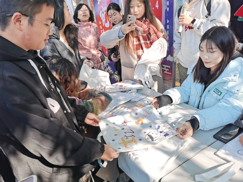 宣讲结束后,活动还为在场师生分发了八十本最新的中华人民共和国宪法读本,并举行了宪法知识答题活动,答题满分的同学获得一个由文思木铎社社员秦婷、徐睿、李嫣然等现场亲自绘制的创意帆布袋。