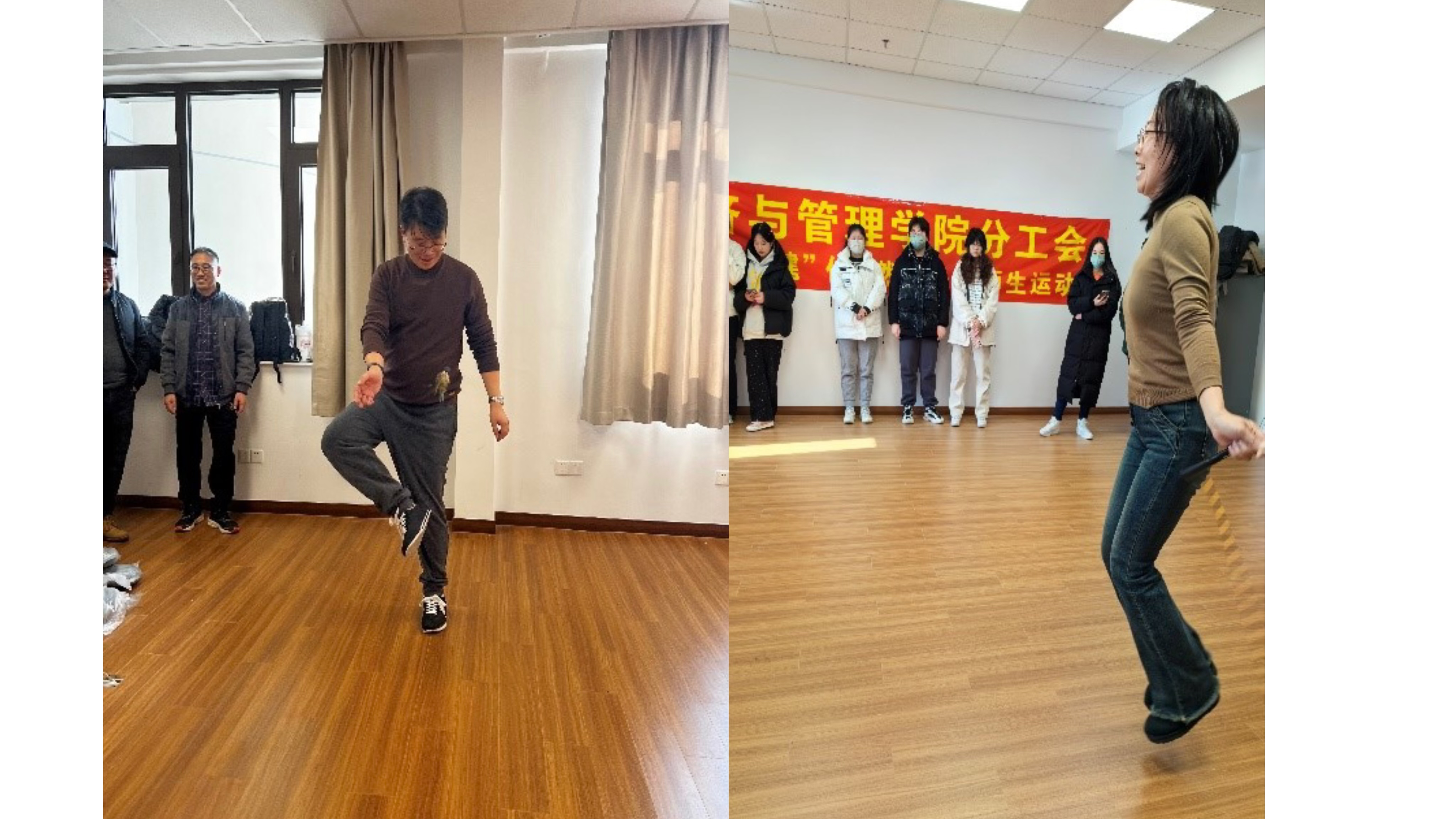 为丰富校园文化生活,促进师生身心健康,增强团队精神,12月20日,经济与管理学院分工会强“绳”“毽”体• 燃动冬日师生运动会在金山校区怀德楼906职工之家举办。经济与管理学院党支部书记蔡军林,院长冯江华,工会主席陈蓓蕾及教师和学生代表共43名师生参加,活动由工会文体委员李强主持。