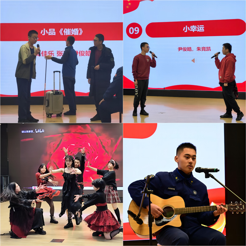 随着23消防救援(一贯)1班毛斯成同学演奏的钢琴独奏《梦中的婚礼》和《Summer》缓缓响起,迎新晚会正式拉开帷幕,那优美的旋律让同学们沉浸在音乐的海洋里,享受音符律动带来的温馨和感动。23消防救援(一贯)2班的唐鑫磊同学带来吉他弹唱《多远都要在一起》,与现场观众热情互动。高佳乐、张硕、尹俊皓三位同学上演的小品《催婚》,将近期流行的热门梗一个接一个的串联起来,引发了观众们阵阵笑声。尹俊皓和朱竞凯同学共同演唱了歌曲《小幸运》,嗓音清澈动人令听众沉醉。舞蹈社同学表演的舞蹈drama,节奏动感十足,令人印象深刻。